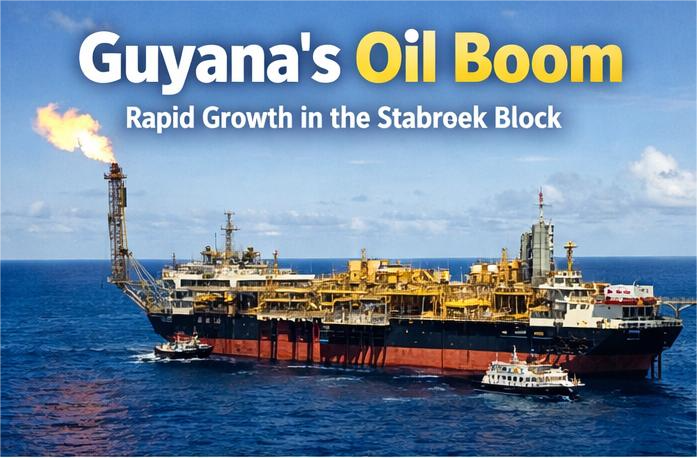 • Oil & Gas Development: Guyana’s offshore Stabroek Block remains one of the fastest-expanding oil basins globally, with multiple FPSOs online and production targeting continued growth through the latter half of the decade.